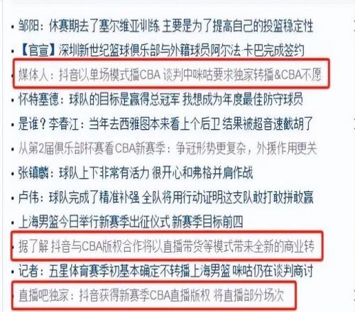 新赛季的CBA联赛就要开打了,但CBA公司还没有确定直播平台,遭到了很多媒体人和球迷的嘲讽,“江南的城”甚至称CBA公司的一些领导是酒囊饭袋。就在刚刚,CBA转播方面终于传来了比较确切的消息,国内知名媒体直播吧透露,某音已经拿到了新赛季CBA联赛的直播版权,新赛季球迷要更换直播平台了。另外CBA联赛还有其他两大最新消息,首先是上海男篮在新赛季的出征仪式上,明确提出新赛季要打入前四;其次是辽宁男篮大将赵继伟,已经开始了恢复训练。