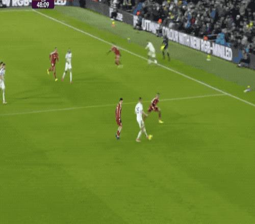 下半场开始后,场上风云突变,第48分钟,利兹联后卫罗登的横传,变成了乌龙助攻,埃基蒂克抢断后冷静晃开阿姆帕杜,打破僵局。